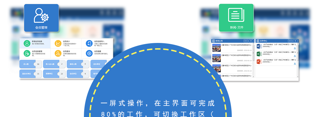 商会管理软件是一款"轻办公"理念的云办公软件,通过云办公的网络管理模式,在云平台上进行会员管理、统计报表、文件管理、会议活动、新闻公告、商会管理等多项功能,实现多人、多平台、多功能的协作办公,轻松对商会的各类信息进行综合便捷的管理。